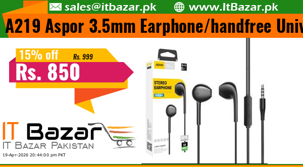 A219 Aspor 3.5mm Earphone/handfree Universal With High Bass Quality Sound