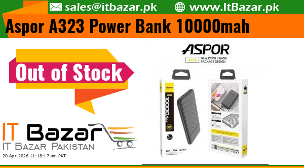 Powerbank Aspor A323, 10,000mAh. Two USB connectors that can deliver up to 2 A., which greatly speeds up the time of your device. You can freely charge the tablet while on the road. The portable battery has a led indicator, which allows you to monitor both the charging process of the Powerbank and the charge consumption. The battery case is made of impact-resistant plastic with Softouch coating.
