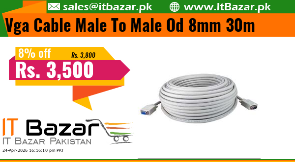 VGA Cable connects a VGA port to a monitor or a projector. It is a standard VGA cable of 30m length