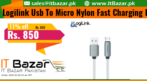 Logilink Usb To Micro Nylon Fast Charging Data Cable With Light 1m White