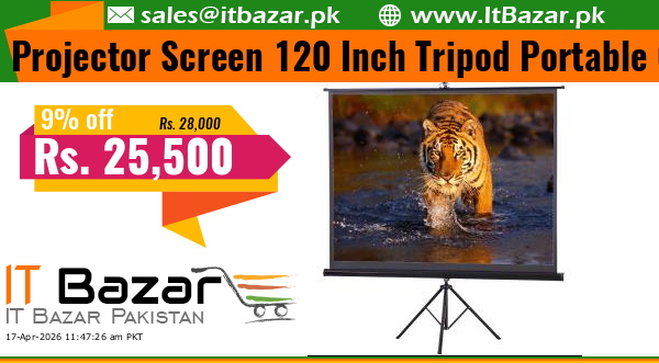 speed-x projector projection screen is 120 inch or 6ft x 8ft in size at a 4:3 widescreen format. It has a strong projector stand. The screen is a high quality multi layer matte white with a black backing to avoid light penetration for a clear image.